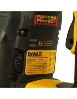Issu de la gamme DeWALT « Perform & Protect« , le perforateur DeWALT 54V DCH733X2 profite de nombreuses fonctionnalités qui garantissent plus de sécurité et la sécurité de l’utilisateur tout en maximisant la productivité lors du perçage et du burinage :